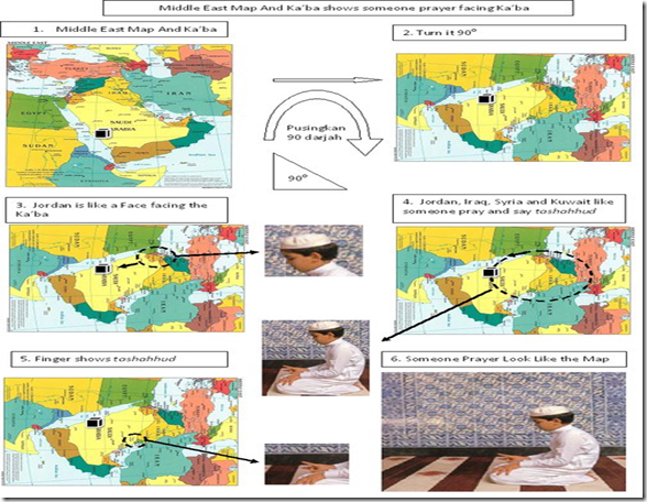 Cuba di perhatikan dan Lihatlah muka manusia di Jordan, Badannya di Iraq, Jari telunjuknya kanan di Kuwait. Tangan sebelah kiri di Sungai Tigris dan Furat. Mereka sedang solat berzikir kepada Allah swt. setiap masa dan sedang mengucapkan kalimah La ilaha Illallah dan menghadap kiblat di Makkah. Itulah antara bukti Zikir-zikir semua makhluk Allah kepada Allah swt. Dan bukti kebenaran Islam. Subhanallah.Gambarnya cuba dilihat dan dicernakan,, terutama gambar pertama, coba perhatikan baik-baik yang dilingkari tu . Bentuknya mirip orang sedang tahiyat, kalau masih bingung lihat gambar berikutnya gan